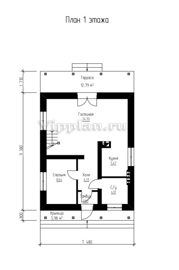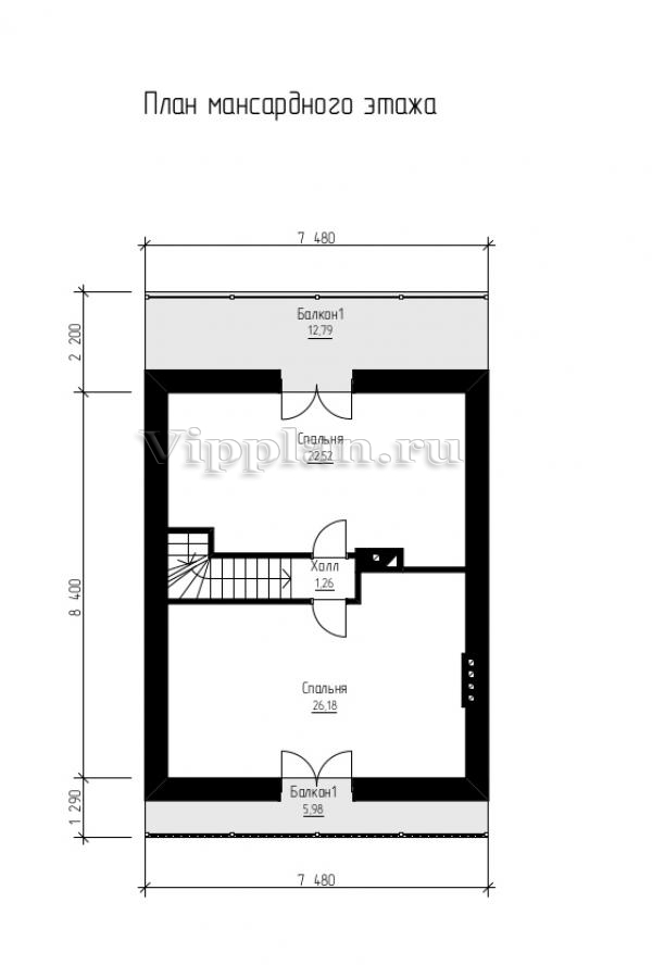 | Размеры дома: | 7.48м×9.38м |