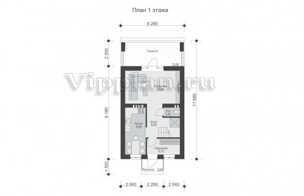 | Размеры дома: | 11.68м×6.28м |