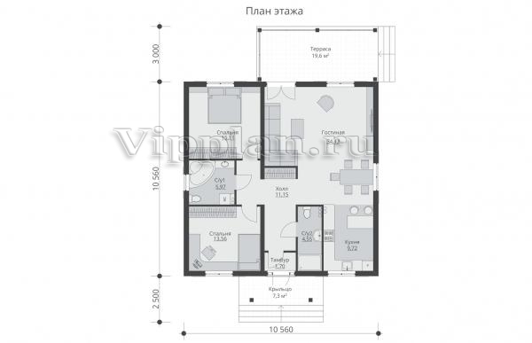 | Размеры дома: | 10.56м×10.56м |