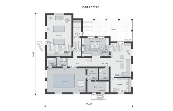 | Размеры дома: | 20.48м×18.98м |
